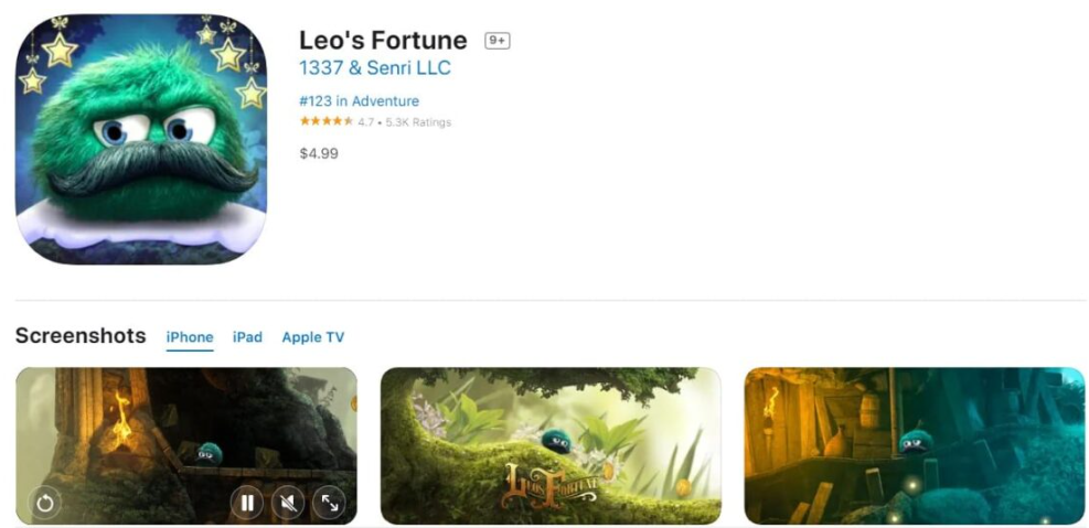 무료로 다운로드 가능하며, 5점 만점에 4.7점의 평가를 받고 있습니다. 2D 게임임에도 불구하고 탁월한 그래픽을 자랑합니다.
