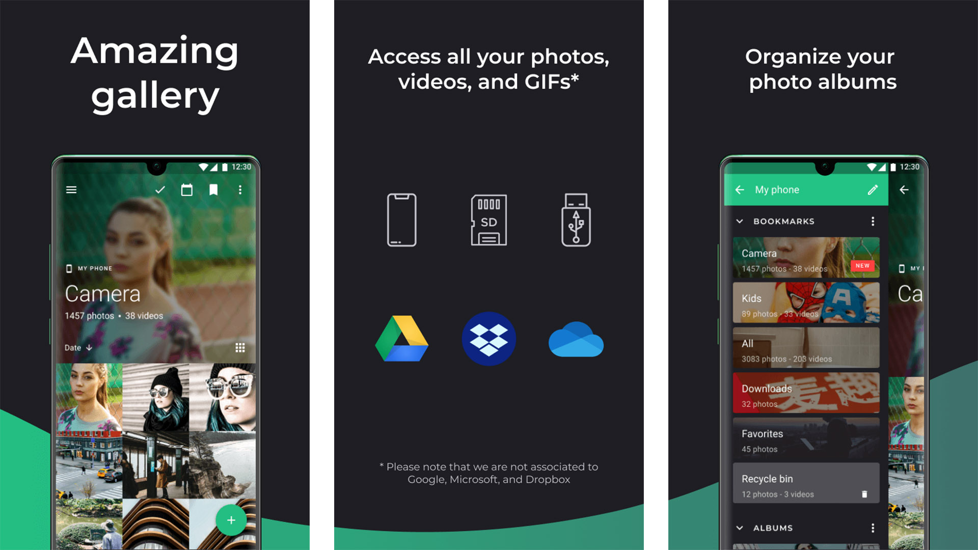 1Gallery는 목록에 있는 최신 갤러리 앱입니다. 또한 표준 갤러리 앱과 갤러리 볼트 앱이 혼합되어 있습니다. 이 앱은 일반 갤러리처럼 작동하며 사진을 날짜별로 그리드 형식으로 볼 수 있습니다. 그러나 이 앱을 사용하면 핀, 패턴 또는 지문 잠금 뒤에 사진과 비디오를 숨길 수도 있습니다. 숨겨진 파일은 숨겨질 뿐만 아니라 개인 정보 보호를 위해 암호화됩니다. 다른 작은 기능에는 매우 간단한 사진 및 비디오 편집기 기능과 밝고 어두운 테마가 포함됩니다. 저렴하고 괜찮으며 시간이 지남에 따라 더 좋아질 것입니다.