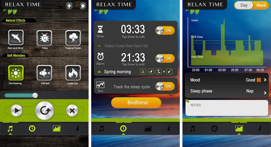 편안한 잠을 위한 또 다른 앱은 Relax Timer 입니다. 그것은 또한 당신을 잠들게 하는 편안한 소리를 들을 수 있게 해주지만 몇 가지 다른 독특한 기능이 있습니다. 가장 강조된 기능 중 하나는 수면 주기 추적기이기도 하여 매일 밤 기록하고 싶은 기분과 기타 사항을 기록할 수 있다는 것입니다. 앱을 사용하기 시작하면 수면 패턴을 살펴보고 개선 사항이 있는지 확인할 수 있습니다.
