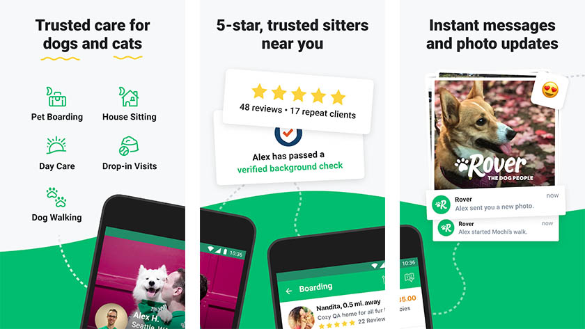 Rover는 반려견 앉기 앱입니다. 여기에서 단기 및 장기 시터를 위한 모든 종류의 시터를 찾을 수 있습니다. 여행을 위해 하루 동안 또는 휴가를 위해 일주일 동안 자리를 비울 예정이라면 매우 효과적입니다. 사용 가능한 모든 사람을 확인하고 대화하고 결제와 같은 사항을 논의할 수 있습니다. 집에 없는 동안 도그 시터가 이미지, 메시지 및 기타 정보를 보낼 수 있습니다. 이런 종류의 작업을 수행하는 것이 우리가 찾을 수 있는 최고의 서비스입니다. 반려견을 동반할 수 있는 장소를 찾고 싶다면 에어비앤비를 이용할 수도 있습니다. 그러나 개를 남겨두고 떠나야 한다면 누렁이가 좋은 해결책이 될 수 있습니다.
