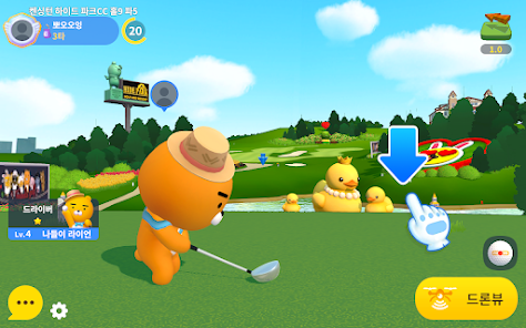 카카오프렌즈 캐릭터를 모으고, 최신 골프 장비로 무장하고, 스킬을 업그레이드하고, 1vs1 실시간 멀티 플레이 골프 경기에서 라이벌에게 도전하세요!
