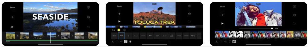 iMovie는 iPhone용 최고의 무료 비디오 편집 앱이며 Mac에서도 사용할 수 있으므로 OS 앱이 정확히 같지 않더라도 이미 익숙할 것입니다. 이 앱은 휴대폰에 자동으로 포함되며 LumaFusion과 동일한 기능을 제공하지는 않지만 비디오 편집을 시작하려는 초보자나 음성 해설, 사진, 비디오의 제목 및 음악.